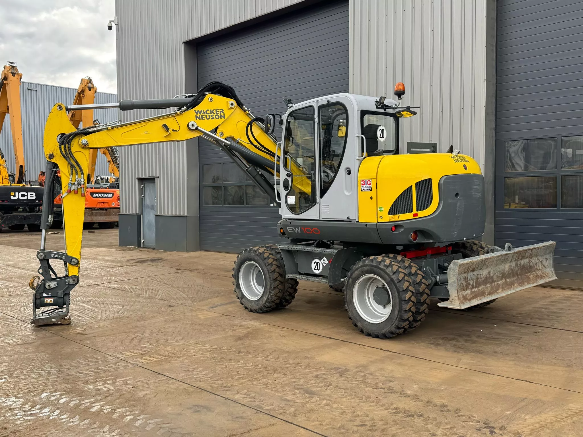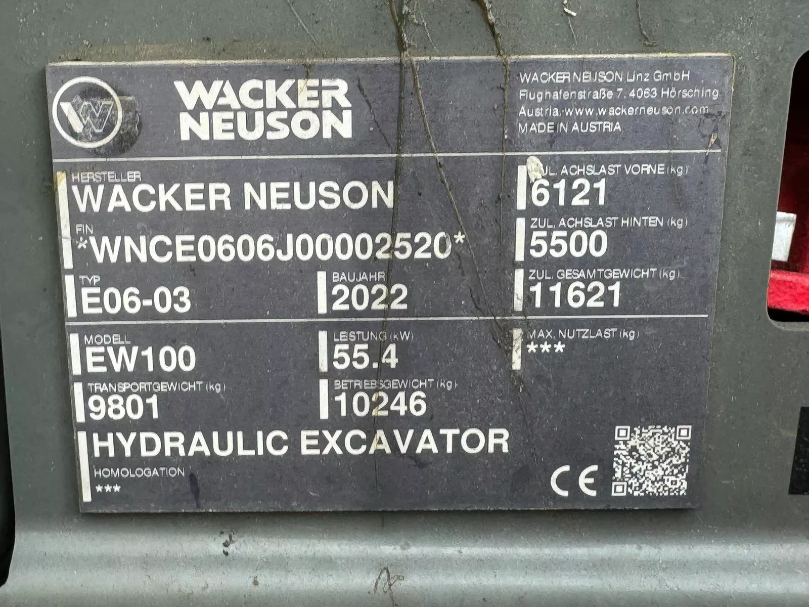 Escavadeira Wacker Neuson EW100 E06-03:  compacto, versátil e econômico, com cabine confortável e motor potente. Ideal para espaços apertados e jornadas longas com eficiência.